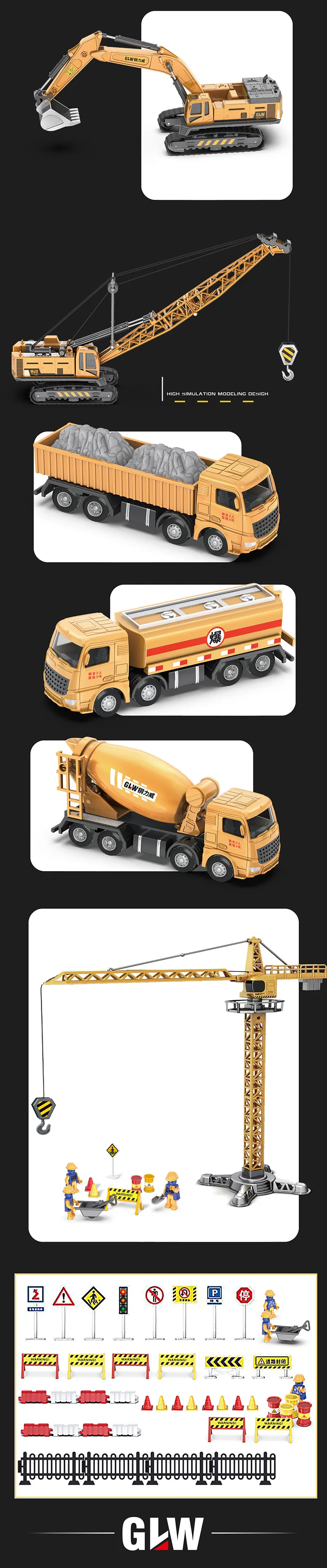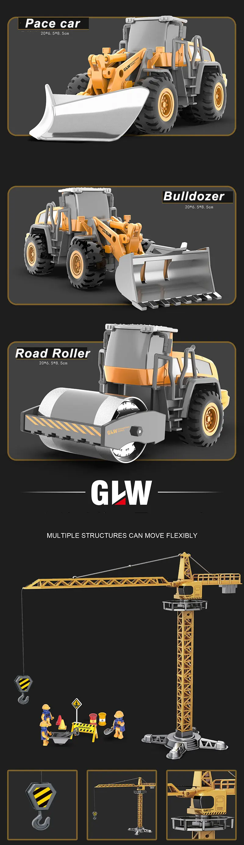 Engineering Diecast Crane Bulldozer Excavator Vehicle Construction Alloy+Plastic Tractor Inertial Model Toys for Children Boys